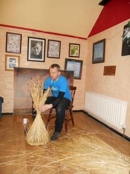 Sunday 15 December saw Pádraic Óg Ó Ruairc arrive with a large bundle of straw to host a workshop in Club Cléire on the making of traditional straw costumes for the Island's Wren Group. The event was very successful with a range of new head masks and straw skirts created, more than we have ever had before. Following the workshop at about 5.30 pm some of the local musicians accompanied by Padraic held a traditional session. On Sunday 22 December all those intending to participate in the both the Big Wren and the Little Wren ( ie. adult and children's Wren) are asked to be in the Club at 3pm for a practice. The Wren itself will kick off t about 12 noon on St Stephens Day as usual. Pádraic himself hopes to join us for the Wren if weather conditions are suitable for the ferry on St Stephens Day.