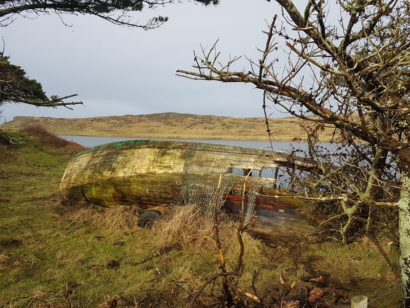 If you travel to the southwestern extreme of Ireland you will, of course, find yourself in West Cork. From there you can take a boat or ferry to Cape Clear which is Ireland’s southernmost Island. When you land you can follow a meandering boreen to Loch Ioral, the southernmost lake in Ireland. From there continue along the lake road, where the flax was soaked in olden days and you will find, at its southwestern point the most southwestern hulk of a proud boat from days gone by.